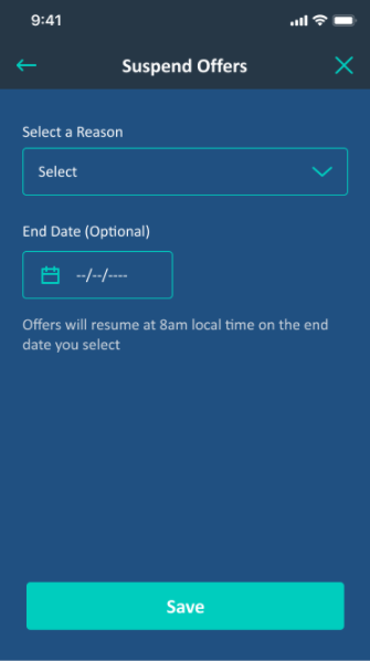 We listened to your feedback regarding wanting more control over suspending offers in the app and we're happy to announce you can now set expiration dates for suspended offers!