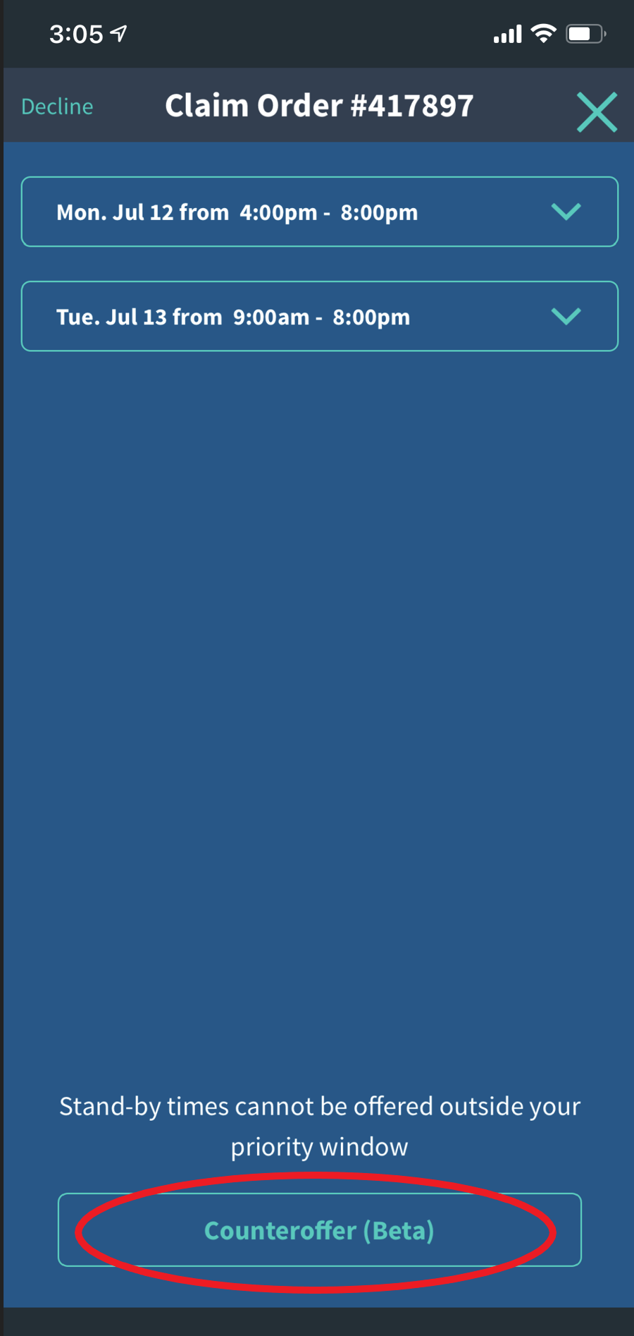 You're now able to submit counteroffers through the App for orders in the New York City area!
